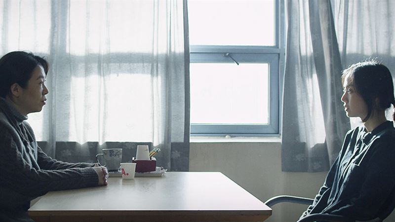 영남(염혜란)과 희주(김시은)가 마주앉아 이야기한다(사진=네이버 영화).