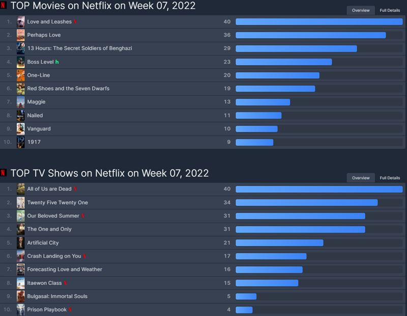 [편집자 주] 글로벌 OTT 순위 집계 사이트 플릭스 패트롤이 공개한 2월 3주차 넷플릭스ㆍ디즈니플러스 콘텐츠 순위를 OTT뉴스가 소개합니다.
