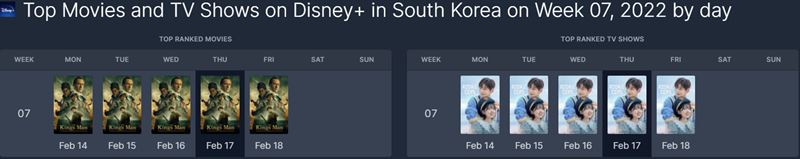 디즈니플러스 금주 한국 순위(사진=플릭스패트롤 캡처).