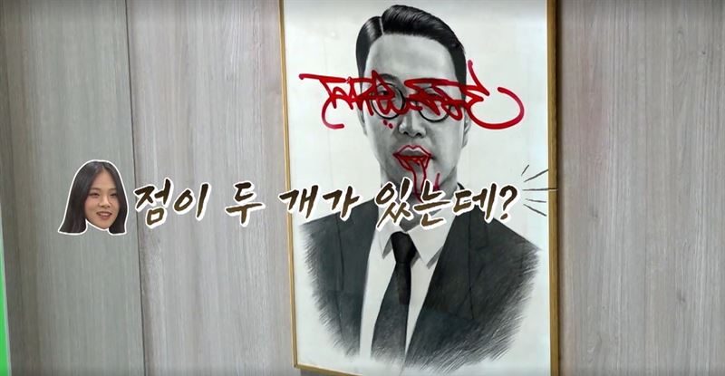 태평여고 설립자 초상화 속 낙서를 발견하는 추리반 멤버들(사진=티빙 <여고추리반2> 캡처).