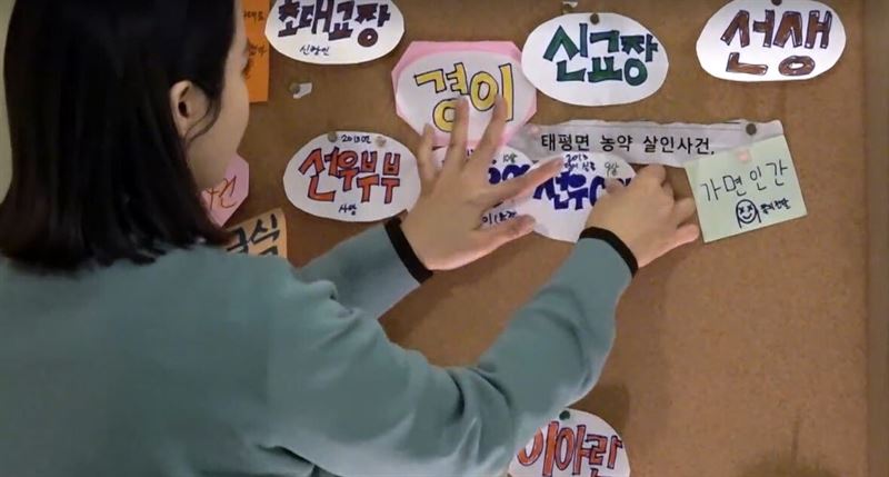 추리반 비밀 게시판을 꾸미는 모습(사진=티빙 <여고추리반2> 캡처).
