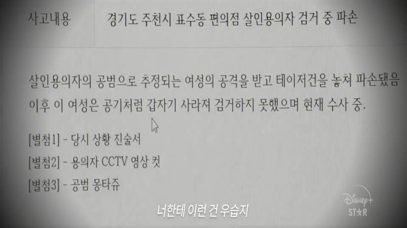 김마녹 살인 사건의 사건 일지(사진=디즈니+코리아)