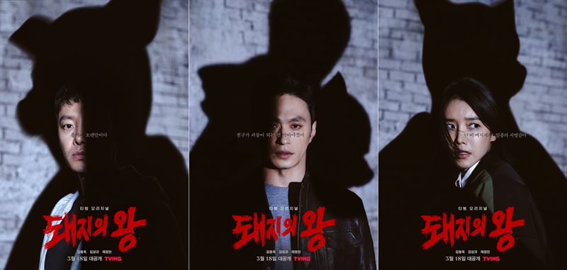티빙 오리지널 시리즈 <돼지의 왕>(연출 김대진, 김상우 극본 탁재영, 제작 히든시퀀스, 스튜디오드래곤, 제공 티빙(TVING), 원작 동명 애니메이션)은 연쇄 살인 사건 현장에 남겨진 20년 전 친구의 메시지로부터 '폭력의 기억'을 꺼내게 된 이들의 이야기를 담은 추적 스릴러 작품이다.