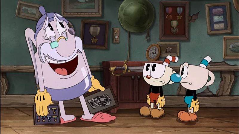 원작에서는 컵헤드 형제들에게 조언을 아끼지 않는 현자 같은 모습이었는데, 애니메이션에서는 말썽꾸러기 손자들을 돌보는 괴팍한 할아버지 느낌으로 그려졌다.