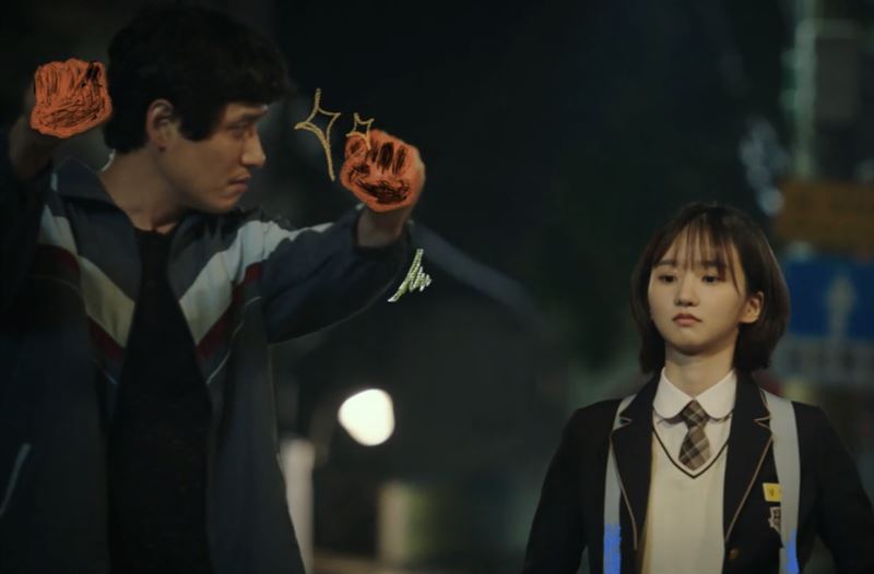 웹툰 작가로 성공한 삶을 꿈꾸는 금필과 그런 아버지에게 태블릿 PC를 선물한 딸 상아(사진=티빙).