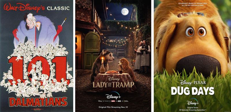 '101마리 달마시안', '레이디와 트램프', '더그의 일상' 포스터(사진=다음영화, 나무위키). ⓒOTT뉴스