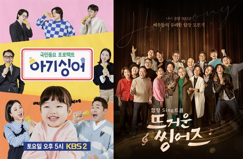 <국민동요 프로젝트 아기싱어>, <뜨거운 씽어즈> 포스터(사진=안테나뮤직 공식 트위터, 공식 홈페이지). ⓒOTT뉴스