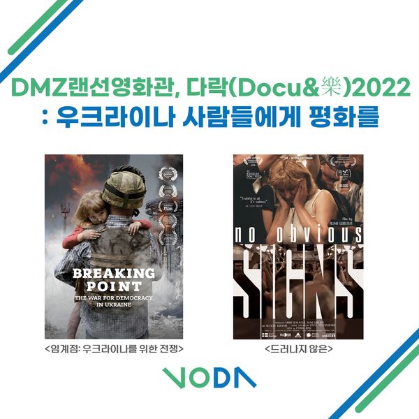 DMZ랜선영화관 다락(Docu&樂) 기획전 '우크라이나 사람들에게 평화를'은 다큐멘터리 전문 OTT '보다 VoDA'를 통해 오늘(25일)부터 공개되며, VoDA 사이트 회원가입 후 한 달간 무료로 관람 가능하다.