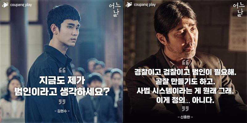 '어느 날'의 주인공 대학생 현수(좌)와 변호사 중한(우).(사진=쿠팡플레이). ⓒOTT뉴스