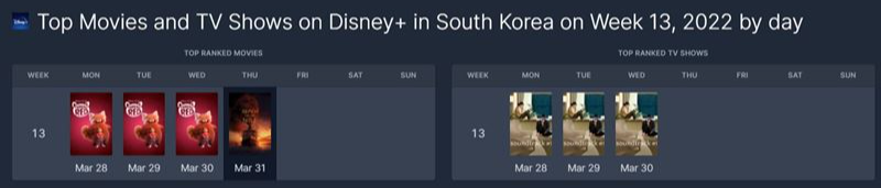 디즈니플러스 금주 한국 순위(사진=플릭스패트롤 캡처). ⓒOTT뉴스