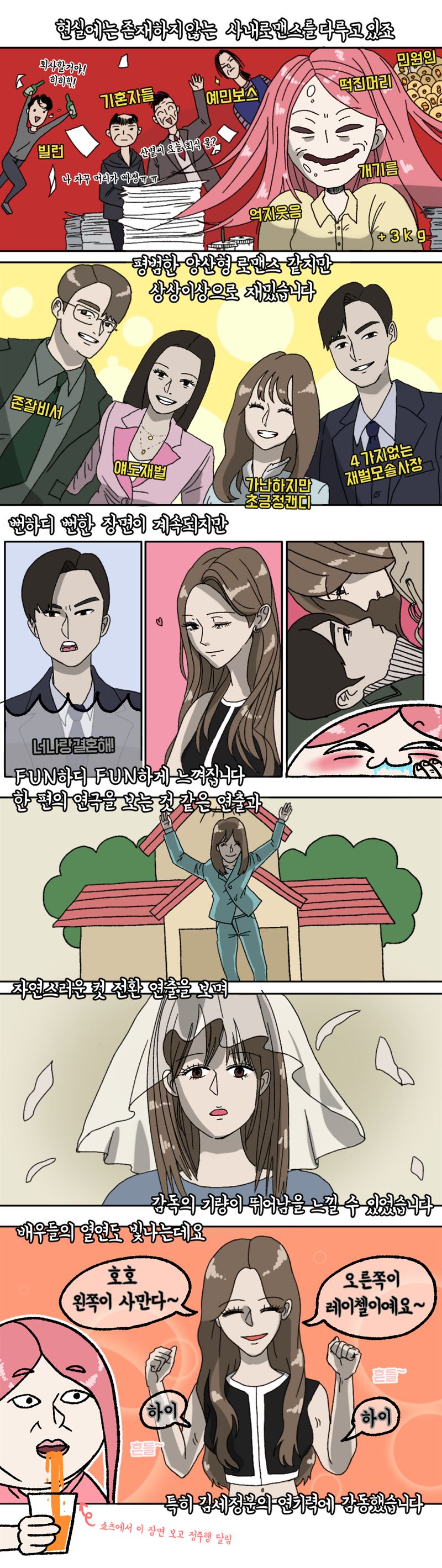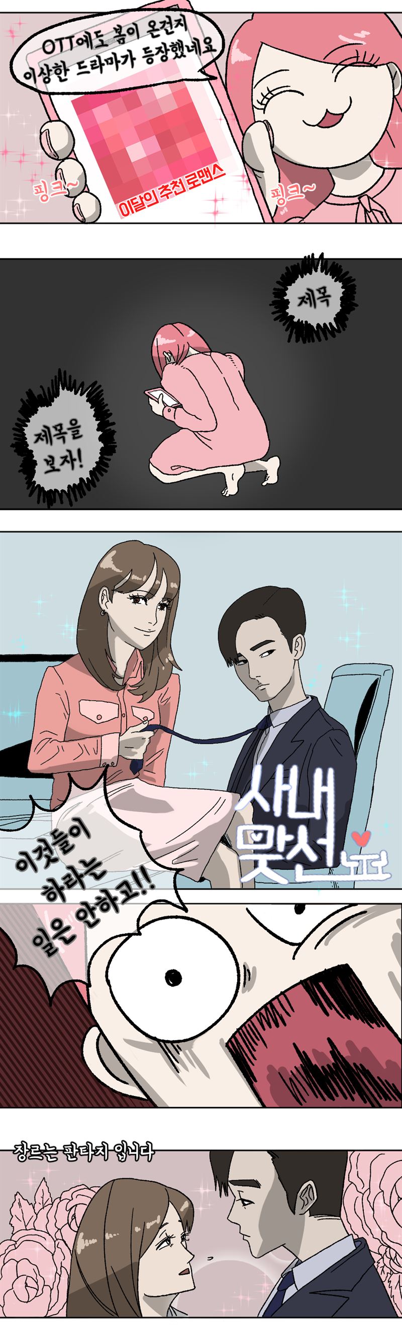[웹툰으로 보는 OTT] '사내맞선' 편(이미지=금산별). ⓒOTT뉴스 [관련 기사] ● [리뷰] '스물다섯 스물하나'와 '사내맞선'이 남긴 아쉬움 ● [분석] 거부할 수 없는 러블리 클리셰, '사내맞선' ● [리뷰] 판타지여서 오히려 좋아, '사내맞선' [웹툰으로 보는 OTT] ● 넷플릭스 '소년심판' 편 ● 디즈니플러스 '이터널스' 편 ● 넷플릭스 '지금 우리 학교는' 편 [편집자주] 웹툰으로 보는 OTT는 웹툰 형식으로 작가의 OTT 콘텐츠 감상을 전달하는 OTT뉴스의 새로운 코너입니다. 3 0 OTT뉴스(오티티뉴스) 금산별 kumsanbyeol@naver.com 금산별의 기사 더보기 저작권자 ⓒ OTT뉴스, 무단 전재 및 재배포 금지 / ottnews.kr