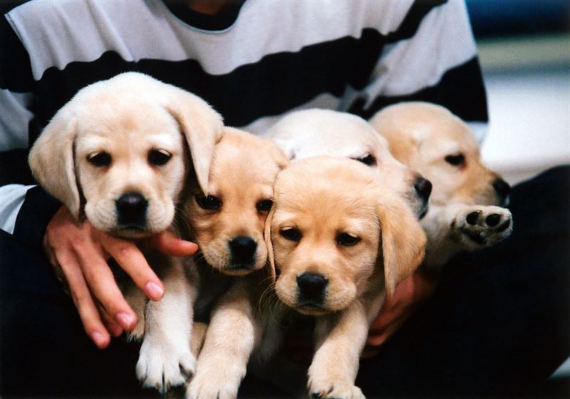도쿄에서 다섯 마리의 래브라도 리트리버 강아지가 태어난다.