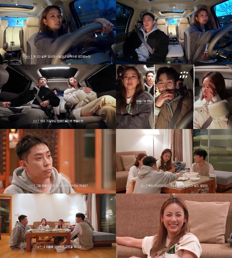 티빙 오리지널 '서울체크인'에서 이효리가 은지원, 김종민, 신지, 딘딘을 만났다(사진=티빙). ⓒOTT뉴스