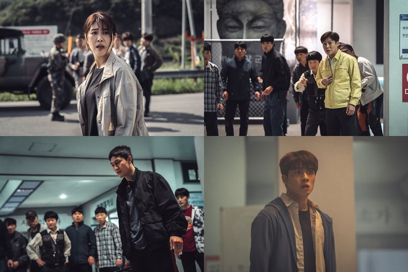 오는 29일(금) 공개되는 티빙 오리지널 시리즈 '괴이'(극본 연상호·류용재, 감독 장건재, 기획 티빙·스튜디오드래곤, 제작 클라이맥스 스튜디오)는 21일 이제껏 경험해 보지 못한 재앙을 마주한 한석희(김지영 분), 권종수(박호산 분), 곽용주(곽동연 분), 한도경(남다름 분)의 모습을 공개해 호기심을 자극한다.
