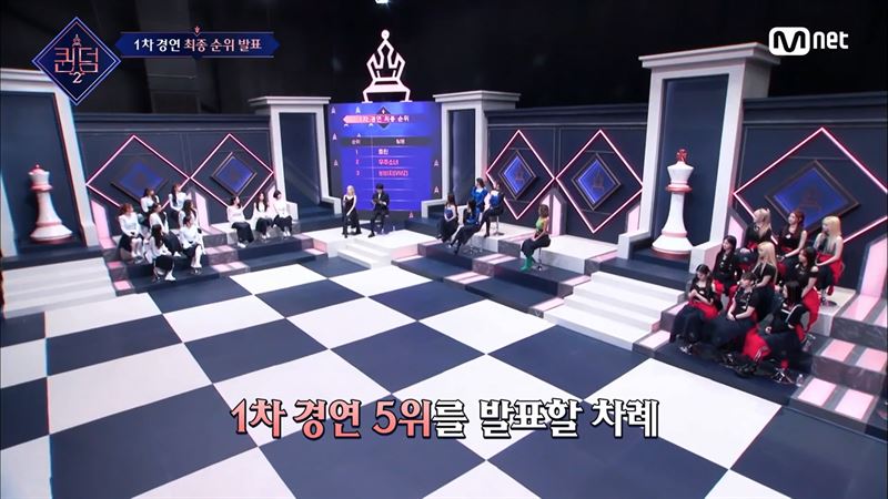 이달의 소녀가 1차 경연에 참여하지 못해 5팀의 순위만 발표하고 있는 스튜디오. 이달의 소녀는 자동 6위가 되었다(사진='퀸덤 2' 공식 네이버TV 캡처). ⓒOTT뉴스