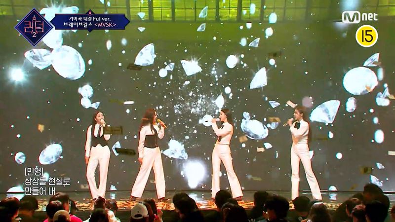 그룹 브레이브걸스의 색으로 재탄생한 엠넷 서바이벌 프로그램 '걸스플래닛999'의 'MVSK' 무대(사진='퀸덤 2' 공식 네이버TV 캡처). ⓒOTT뉴스
