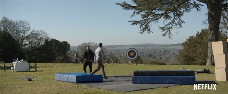영화를 위해 활쏘기를 배우고 있는 모습(사진=넷플릭스 유튜브 캡처). ⓒOTT뉴스