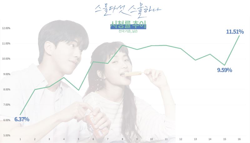 닐슨 통계를 바탕으로 한 드라마 '스물 다섯, 스물 하나' 시청률 추이(사진=티빙). ⓒOTT뉴스