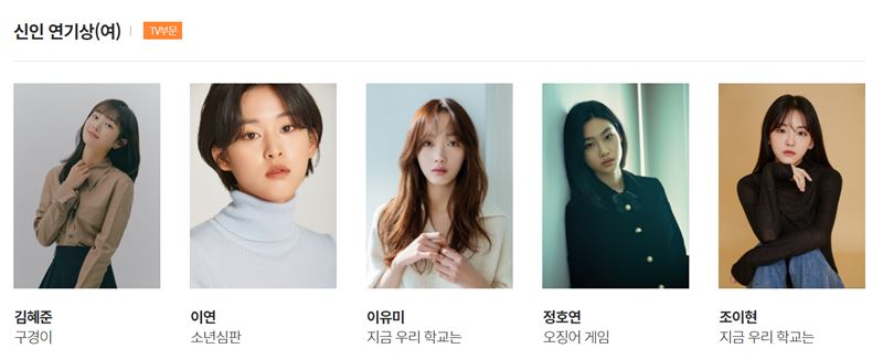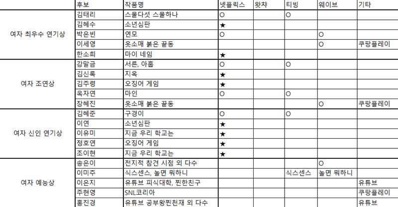 한편 여자 신인 연기상은 넷플릭스 작품의 독주라고 봐도 무방하다.
