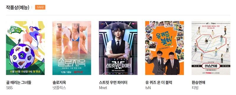 지금까지 예능 부문 작품상은 그 해 가장 뜨겁고 화제성을 보여줬던 예능이 수상했기 때문이다.