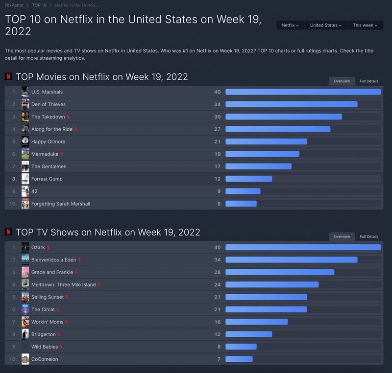 넷플릭스 금주 미국 순위(사진=플릭스패트롤 캡처). ⓒOTT뉴스