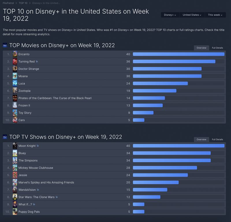 디즈니플러스 금주 미국 순위(사진=플릭스패트롤 캡처). ⓒOTT뉴스