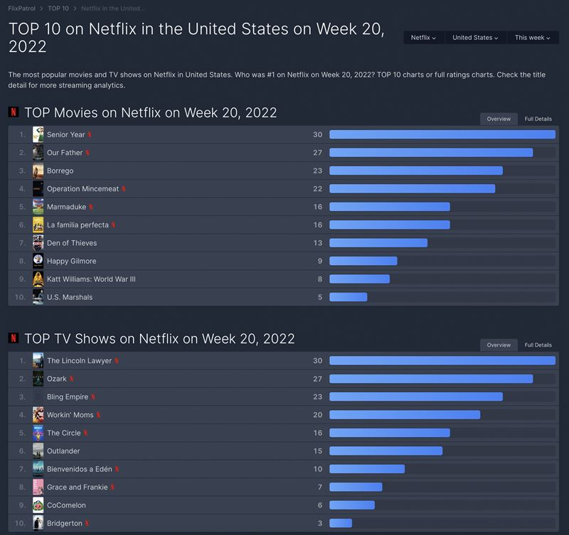 넷플릭스 금주 미국 순위(사진=플릭스패트롤 캡처). ⓒOTT뉴스