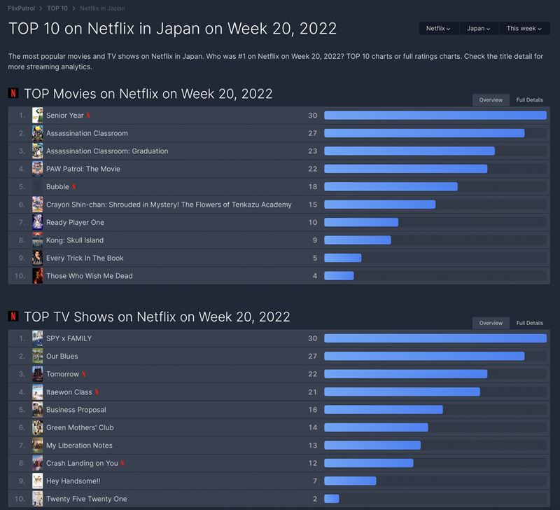 넷플릭스 일본 영화 부문 1위 역시 '시니어 이어'가 차지했다.