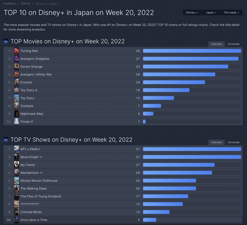 디즈니플러스 금주 일본 순위(사진=플릭스패트롤 캡처). ⓒOTT뉴스