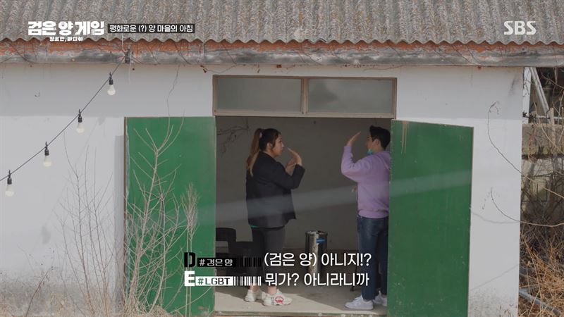 은밀히 대화하는 참가자 D와 E(사진=SBS 공식 홈페이지). ⓒOTT뉴스