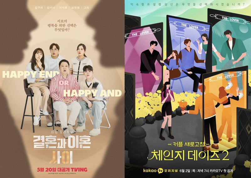 바로 '이혼' 위기의 부부들을 다룬 티빙 오리지널 '결혼과 이혼 사이', 그리고 '이별' 위기의 커플들을 다룬 카카오TV 오리지널 '체인지 데이즈 2'이다.