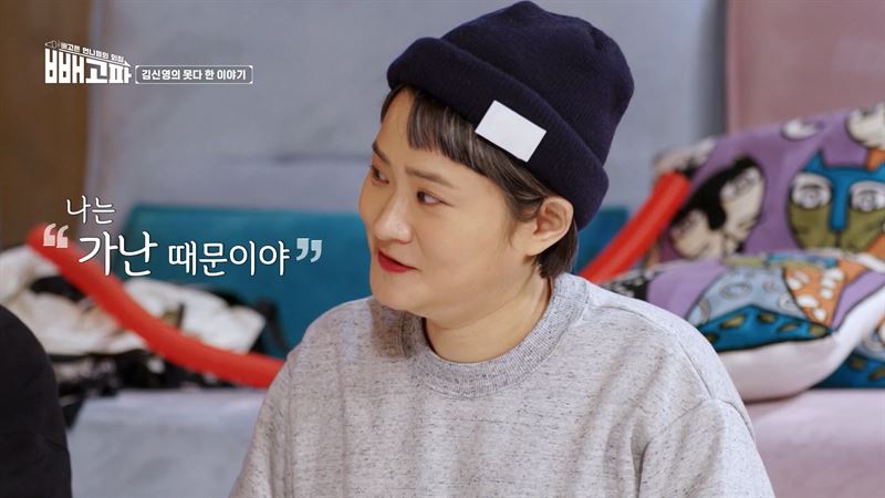가난 때문에 살이 쪘다고 고백하는 김신영(사진=웨이브 캡처). ⓒOTT뉴스