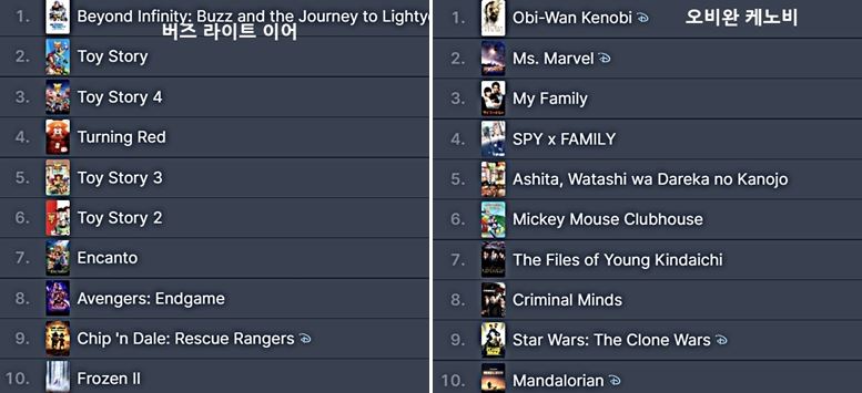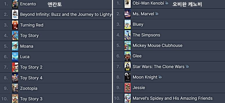디즈니플러스 전세계 2022년 24주차 영화/TV 부문 TOP 10