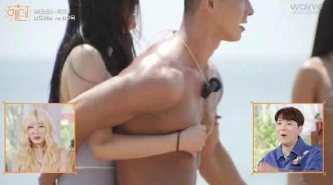 짝피구 게임을 하면서 남성 출연자가 옷을 벗거나 남녀가 밀착하며 자연스럽게 스킨십 하는 모습들이 카메라 앵글에 고스란히 잡혔다.