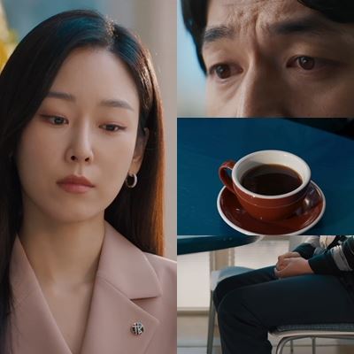 [갈 곳 잃은 눈과 함께 발을 떠는 증인, 그걸 놓치지 않고 관찰하는 오수재(사진=웨이브). ⓒOTT뉴스]