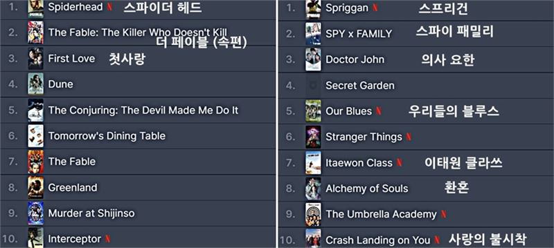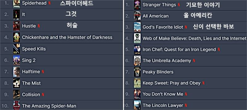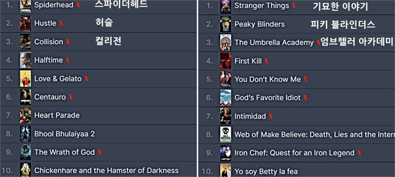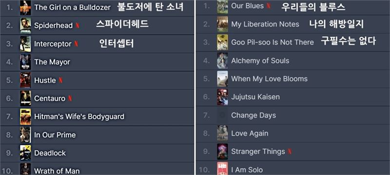 넷플릭스 한국 2002년 25주차 영화/TV 부문 TOP 10