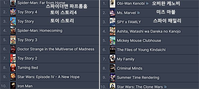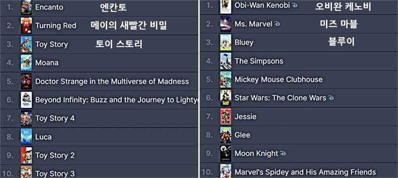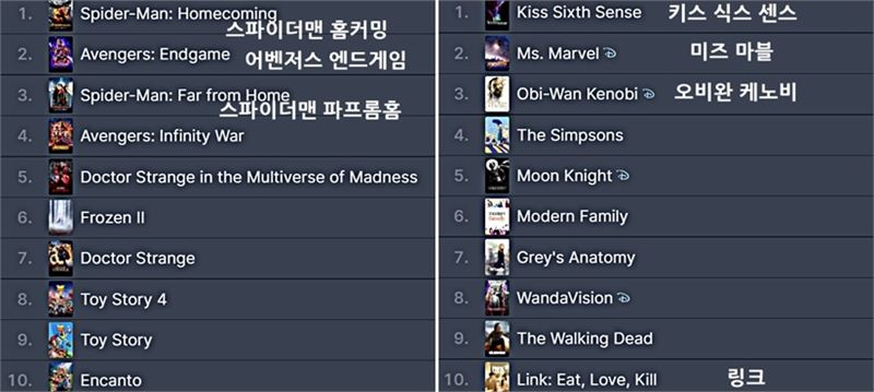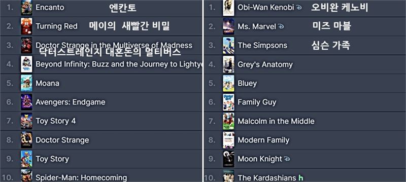 디즈니플러스 한국 2022년 25주차 영화/TV 부문 TOP 10