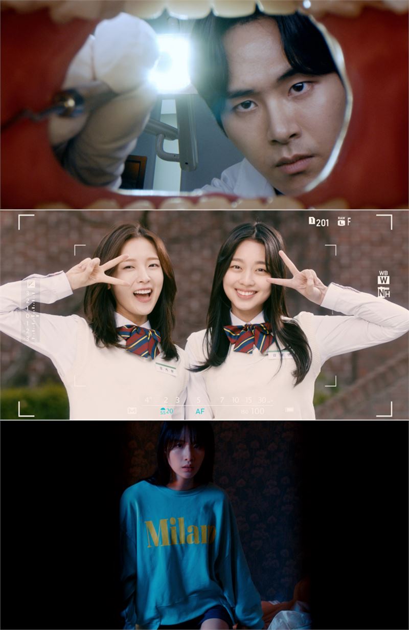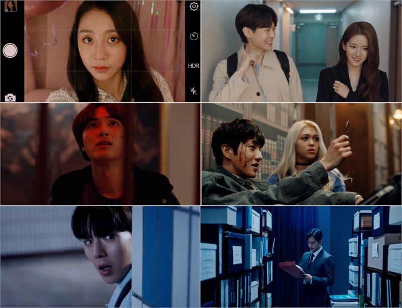 '얼굴도둑'의 서지수 분, '층간소음'의 엑시 분, '방탈출'의 봉재현 분, 알렉사 분, 주학년 분, '마네킹'의 셔누 분, '혼인'의 이민혁 분 아이돌 가수들이 등장하는 장면들 (사진=다음영화). ⓒOTT뉴스