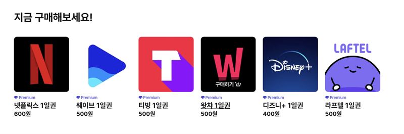 하루 이용 가격이 400원에서 600원 정도로 책정이 돼있어 기존 한달 단위로 구독하지 않고도 저렴한 가격에 이용할 수 있다.