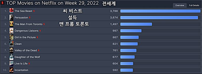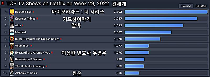 넷플릭스 [전세계] 2022년 29주차 영화/TV 부문 TOP 10
