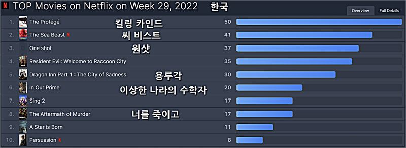 넷플릭스 한국 2022년 29주차 영화 부문 TOP 10 ⓒOTT뉴스