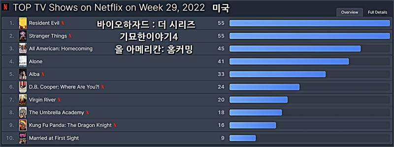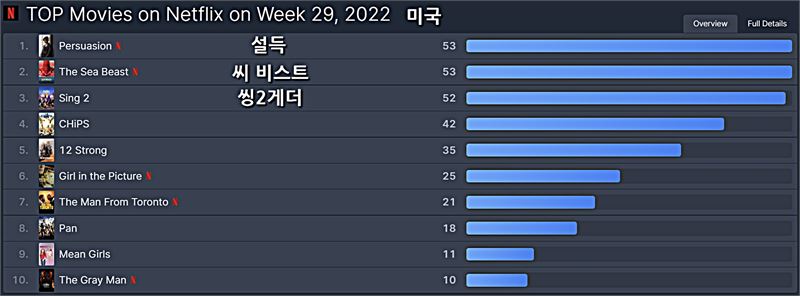넷플릭스 [미국] 2022년 29주차 영화/TV 부문 TOP 10
