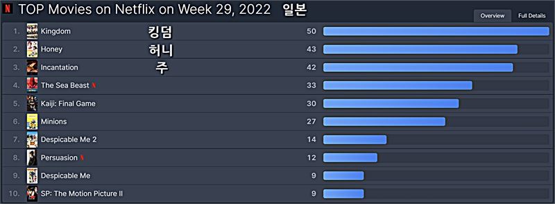 넷플릭스 일본 2022년 29주차 영화 부문 TOP 10 ⓒOTT뉴스