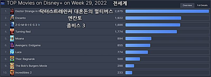 디즈니플러스 전세계 2022년 29주차 영화 부문 TOP 10 ⓒOTT뉴스
