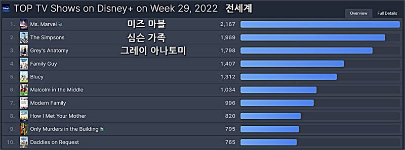 디즈니플러스 전세계 2022년 29주차 TV 부문 TOP 10 ⓒOTT뉴스