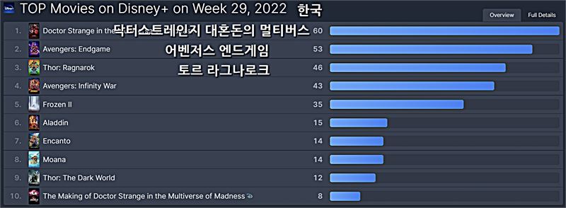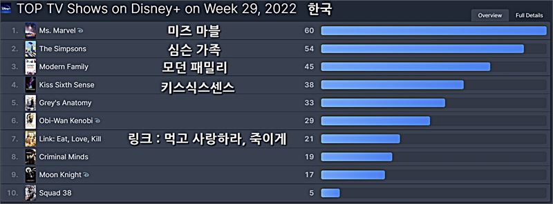디즈니플러스 [한국] 2022년 29주차 영화/TV 부문 TOP 10