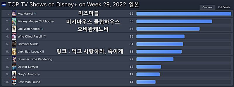디즈니플러스 일본 2022년 29주차 TV 부문 TOP 10 ⓒOTT뉴스