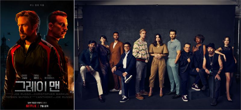 '그레이 맨' 메인포스터와 출연배우 단체컷 (사진=넷플릭스, 다음영화) ⓒOTT뉴스