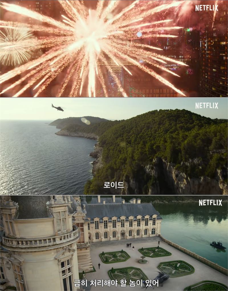 위에서부터 식스가 작전을 수행하는 방콕, 로이드가 피츠로이를 데려가는 크로아티아 로케이션을 담아내는 카메라 앵글 (사진=넷플릭스 유튜브 캡쳐) ⓒOTT뉴스
