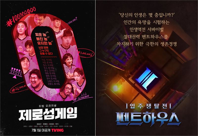 몸무게를 소재로 상금을 사수하는 서바이벌 심리 게임, 티빙 오리지널 '제로섬게임'과 절대권력 펜트하우스를 차지하기 위한 극한의 생존경쟁, 웨이브 오리지널: '입주쟁탈전: 펜트하우스'(이하 펜트하우스).